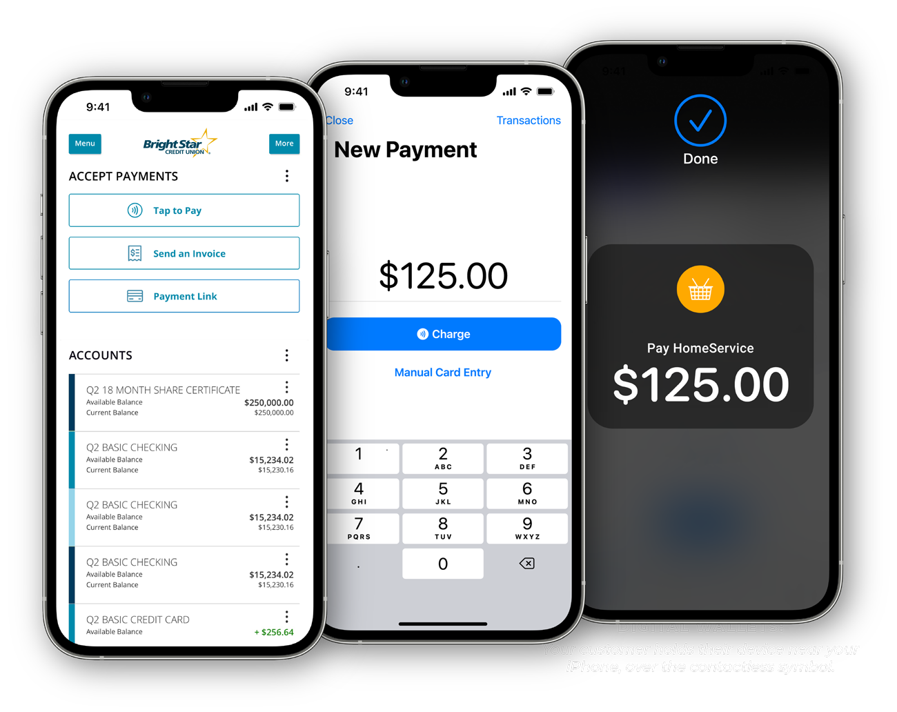 Accept payments with Tap to Pay on iPhone through BrightStar's mobile banking app in four simple steps.